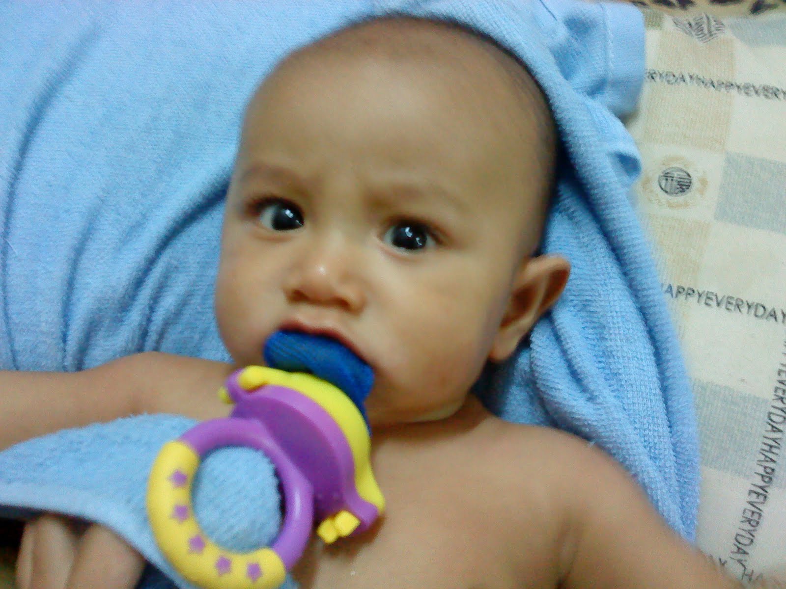 irfan tak reti picit kasi bunyi, tau gigit je.. hehe..